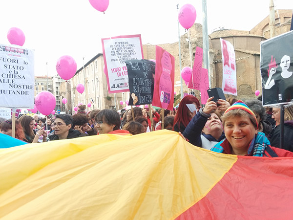 Dopo un anno esatto dalla prima manifestazione di Non Una di Meno, ieri 150 mila donne e uomini hanno marciato per le strade di Roma per dire basta alla violenza contro le donne. E per lanciare il “Piano femminista contro la violenza maschile e di genere” elaborato in questi dodici mesi di vita della rete. Dal carro principale hanno parlato in tanti e tante per esporre i diversi punti del piano, per rappresentare tutte le forme di violenza, discriminazione, abusi che le donne, ma anche le sex workers e le persone lgbt+ subiscono quotidianamente, dalla scuola al parto, dalla nascita al posto di lavoro. Ecco le foto del corteo.