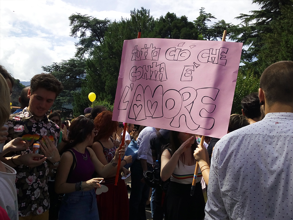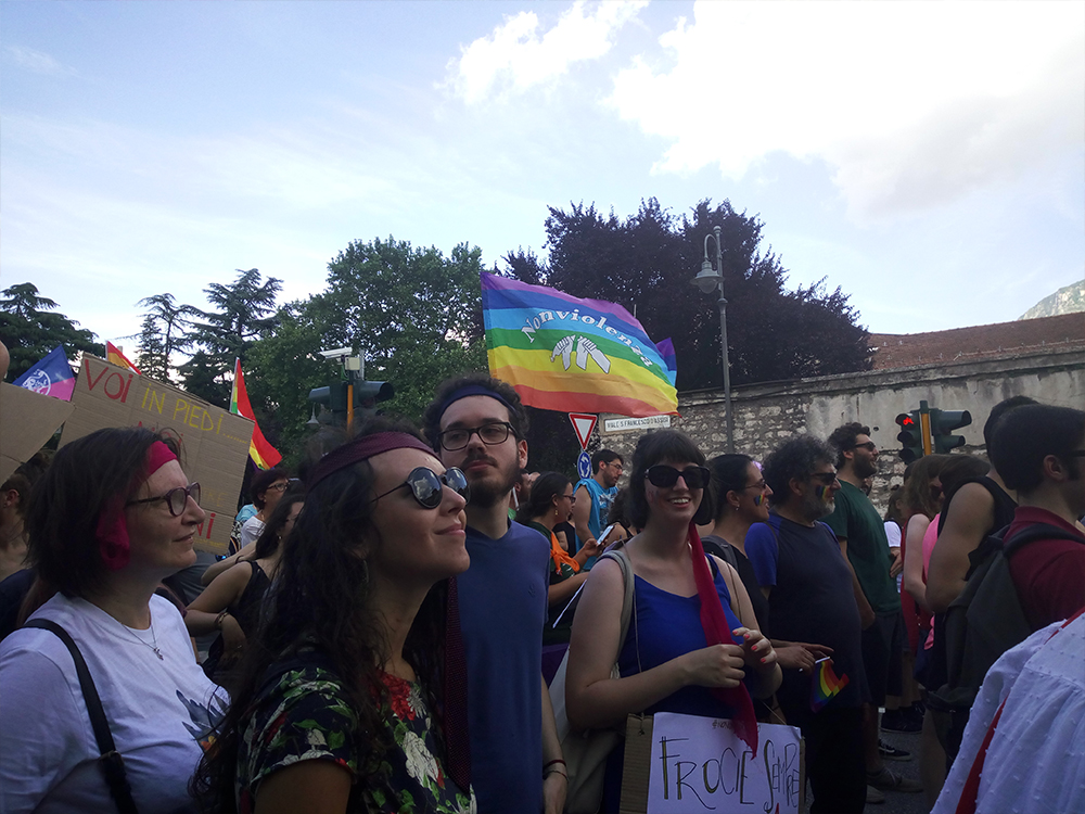 Un pride colorato e tutt’altro che timido sul piano politico. In prima fila, Famiglie Arcobaleno ha aperto il corteo che ha sollecitato il sindaco a perseguire la strada delle trascrizioni all’anagrafe dei figli arcobaleno inserendo entrambi i genitori dello stesso sesso. Non solo. Sul palco nel parco delle Albere si è anche parlato di diritto all’aborto, autodeterminazione, migranti. Fra i tanti interventi, ricordiamo uno stralcio del discorso del gruppo donna di Arcigay Trento: “Dobbiamo essere un baluardo contro i razzisti e chi vuole le donne custodi del focolare -ha dichiarato Michela Papette- né Fontana né le sparute femministe estreme ci toglieranno l’autodeterminazione: cosa sono serviti gli studi di genere se è la biologia a farci donne?”. Un riferimento, nemmeno troppo velato, a certo associazionismo lesbo-femminista -ieri assente- che negli ultimi anni ha dimostrato più vicinanza politica a Casa Pound che al movimento LGBT.