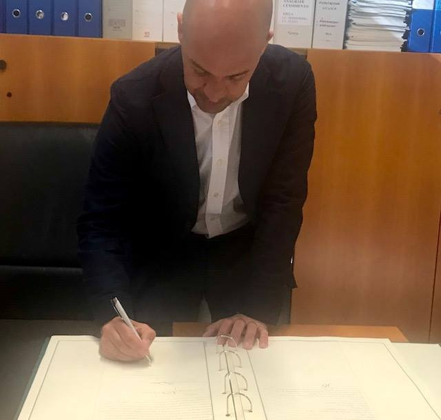 “Per questo sono davvero molto contento, quale uno degli ultimi atti del mio primo mandato – continua Cavarra (nella foto mentre firma)-, di essere riuscito a firmare l’atto di nascita di G.A, un bambino che da oggi è ufficialmente figlio di due papà e che potrà vivere e crescere nella sua famiglia arcobaleno inserita nella nostra comunità, a testimonianza dello spirito e della civiltà di una grande città come la nostra. #RestiamoSarzana”.
