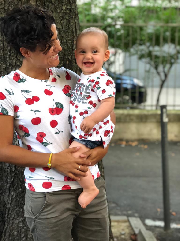 Blu ha quasi un anno e va già al nido. Non parla ancora, ma ha trovato due nomignoli per chiamare le sue mamme: Meg è mammamamma e Robi è ma’.