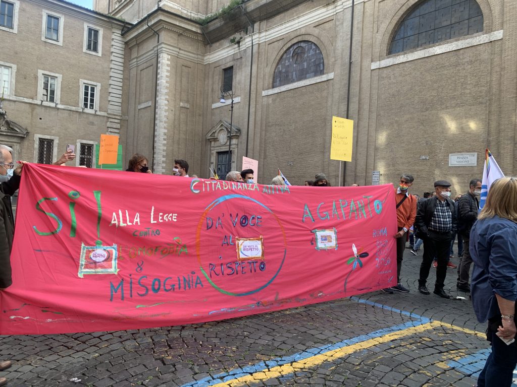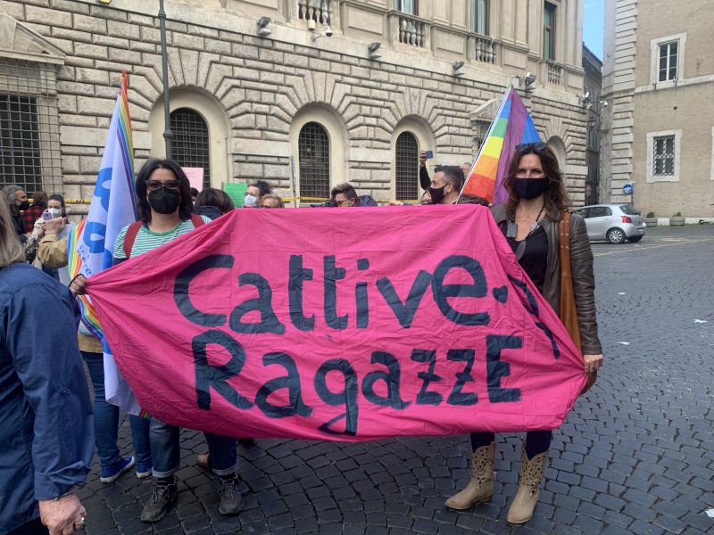 Con le manifestanti e i manifestanti, anche l’onorevole Alessandro Zan (Pd), relatore della legge alla Camera, e le senatrici Monica Cirinnà (PD) e Alessandra Maiorino (M5S). Entrambe fanno parte della Commissione Giustizia del Senato.