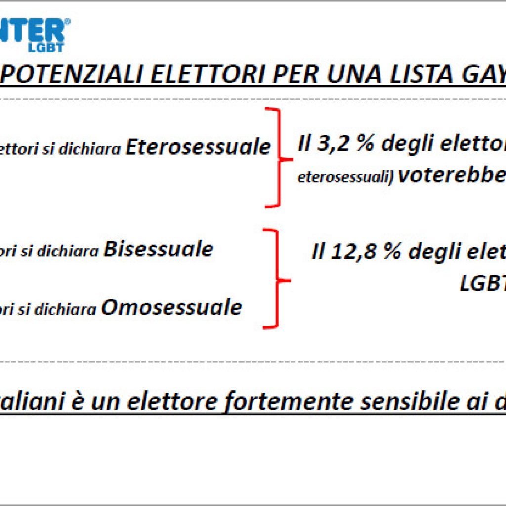 Solo il 15, 4 per cento, infine, sente l’esigenza di una “lista gay”, mentre il 27,3 per cento vi guarderebbe con interesse.