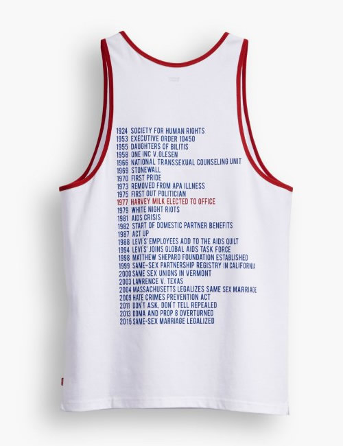 Una collezione dedicata ad Harvey Milk e realizzata in collaborazione con la fondazione intestata al noto attivista gay ucciso a San Francisco il 27 novembre 1978, dopo che era stato eletto al consiglio comunale, primo gay della storia Usa a ricoprire una carica pubblica. È la nuova linea di Levi’s, il famoso brand di abbigliamento che dopo la collezione Stonewall dello scorso anno, lancia ora la Pride Collection 2016 che include capi d’abbigliamento “gender fluid”, indossabili cioè sa da maschi che da femmine. Spiccano la maglia con il logo dell’azienda in versione arcobaleno e la canotta con una bottiglia di latte sulla parte frontale (milk, appunto) e la cronologia delle tappe principali della storia del movimento e dei diritti della gay community sul retro. “La Levi’s x Harvey Milk Foundation Pride 2016 collection – ha dichiarato l’azienda – è la rappresentazione fisica di quanto Levi’s creda nell’uguaglianza di tutte le persone tramandando l’eredità di una persona schietta, coraggiosa e pioniera il cui esempio non sarà mai dimenticato”. “È un messaggio semplice – ha aggiunto Stuart Milk, presidente della Harvey Milk Foundation – caratterizzato dalla dignità e dal rispetto, che abbracciamo senza eccezioni, e che tiene viva la promessa dello zio Harvey di uguaglianza per tutte le persone, ovunque”.