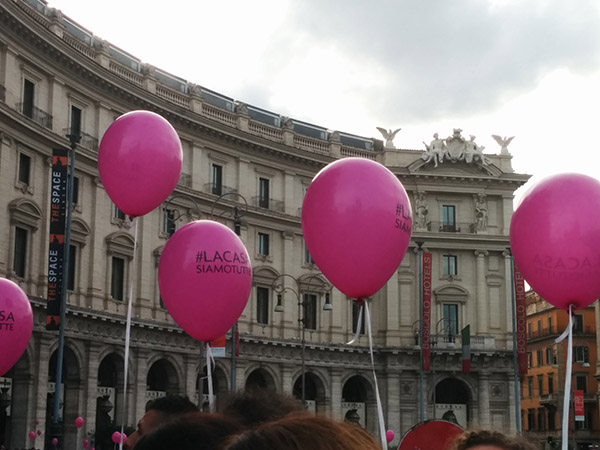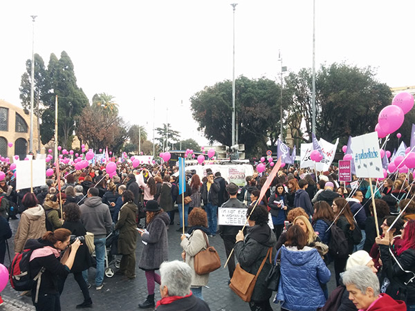 Dopo un anno esatto dalla prima manifestazione di Non Una di Meno, ieri 150 mila donne e uomini hanno marciato per le strade di Roma per dire basta alla violenza contro le donne. E per lanciare il “Piano femminista contro la violenza maschile e di genere” elaborato in questi dodici mesi di vita della rete. Dal carro principale hanno parlato in tanti e tante per esporre i diversi punti del piano, per rappresentare tutte le forme di violenza, discriminazione, abusi che le donne, ma anche le sex workers e le persone lgbt+ subiscono quotidianamente, dalla scuola al parto, dalla nascita al posto di lavoro. Ecco le foto del corteo.