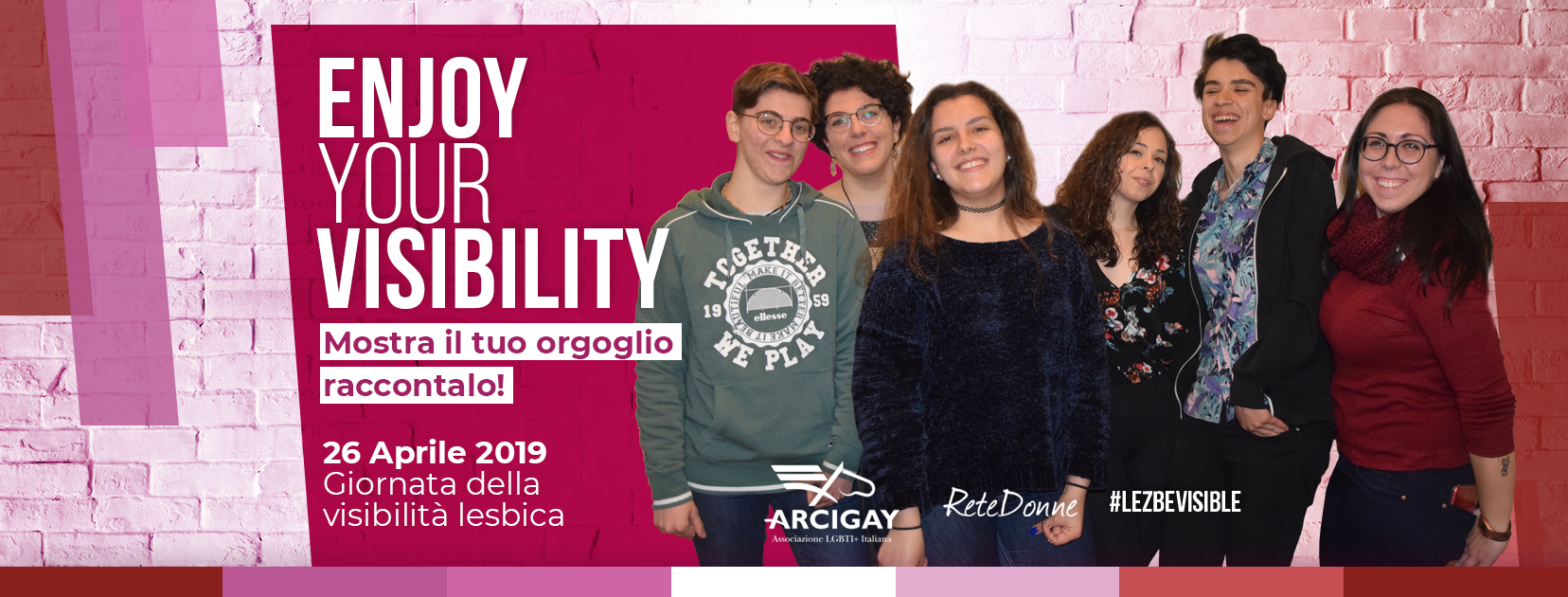 Si celebra oggi, 26 aprile, la Giornata della visibilità lesbica. “Enjoy your visibility. Mostra il tuo orgoglio, raccontalo!” è la campagna social ideata da La Rete Donne di Arcigay. Protagoniste le stesse donne della Rete che si sono fotografate in situazioni di gioco e di complicità per raccontare la gioia che provano nell’essere lesbiche e visibili, ognuna a modo suo.