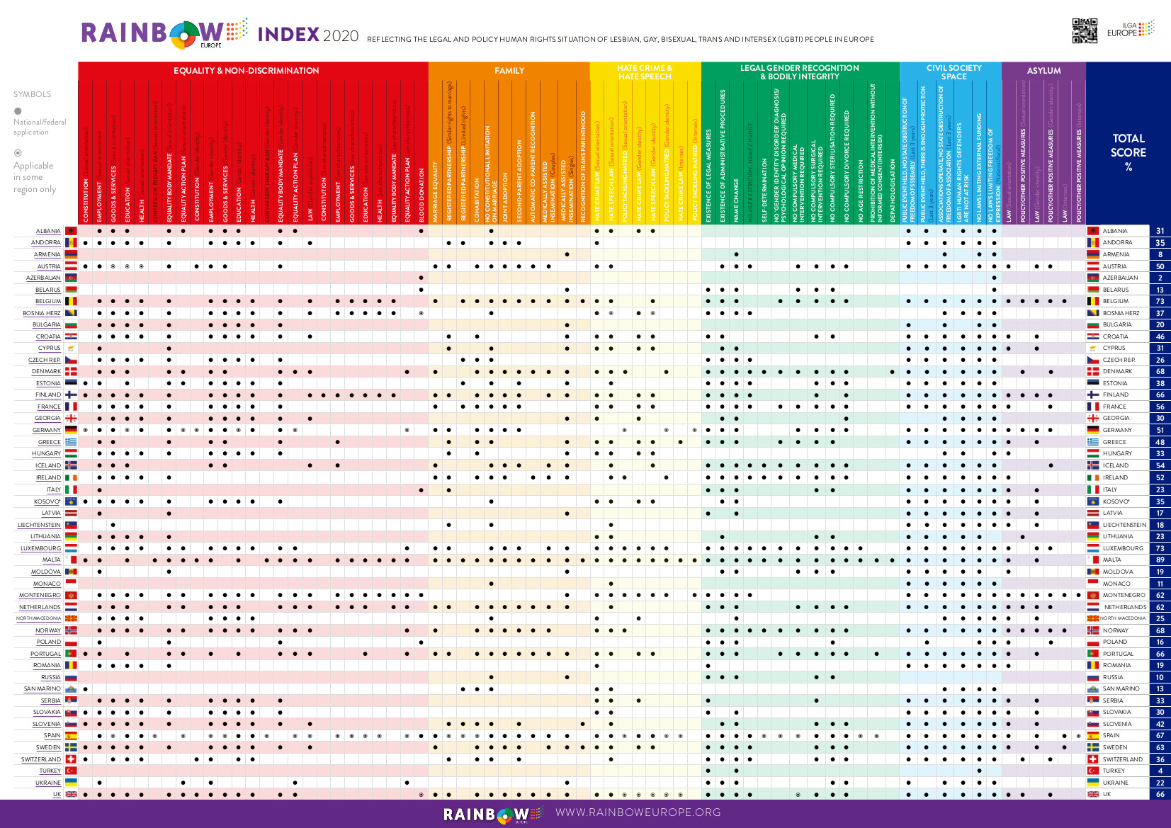La Rainbow map 2020 (clicca sull’immagine per ingrandirla)