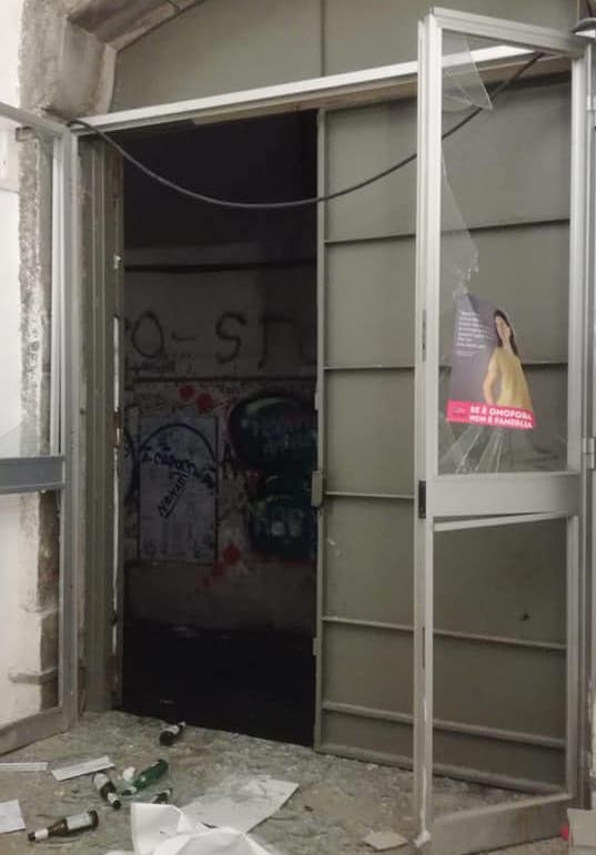 «Questa sera abbiamo trovato la nostra sede vandalizzata da ignoti che hanno tagliato la porta in ferro, distrutto la porta a vetri e vandalizzato il nostro spazio» è riportato sulla pagina di Arcigay Salerno.